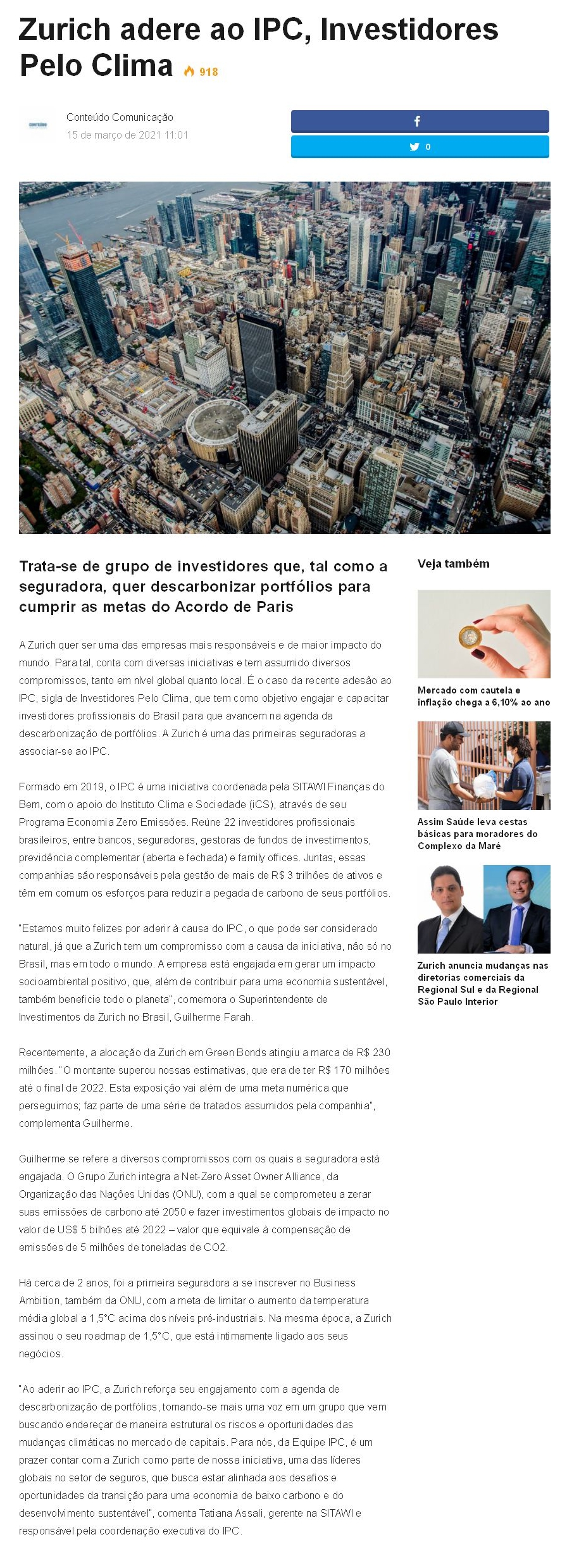 Zurich adere ao IPC, Investidores Pelo Clima 702